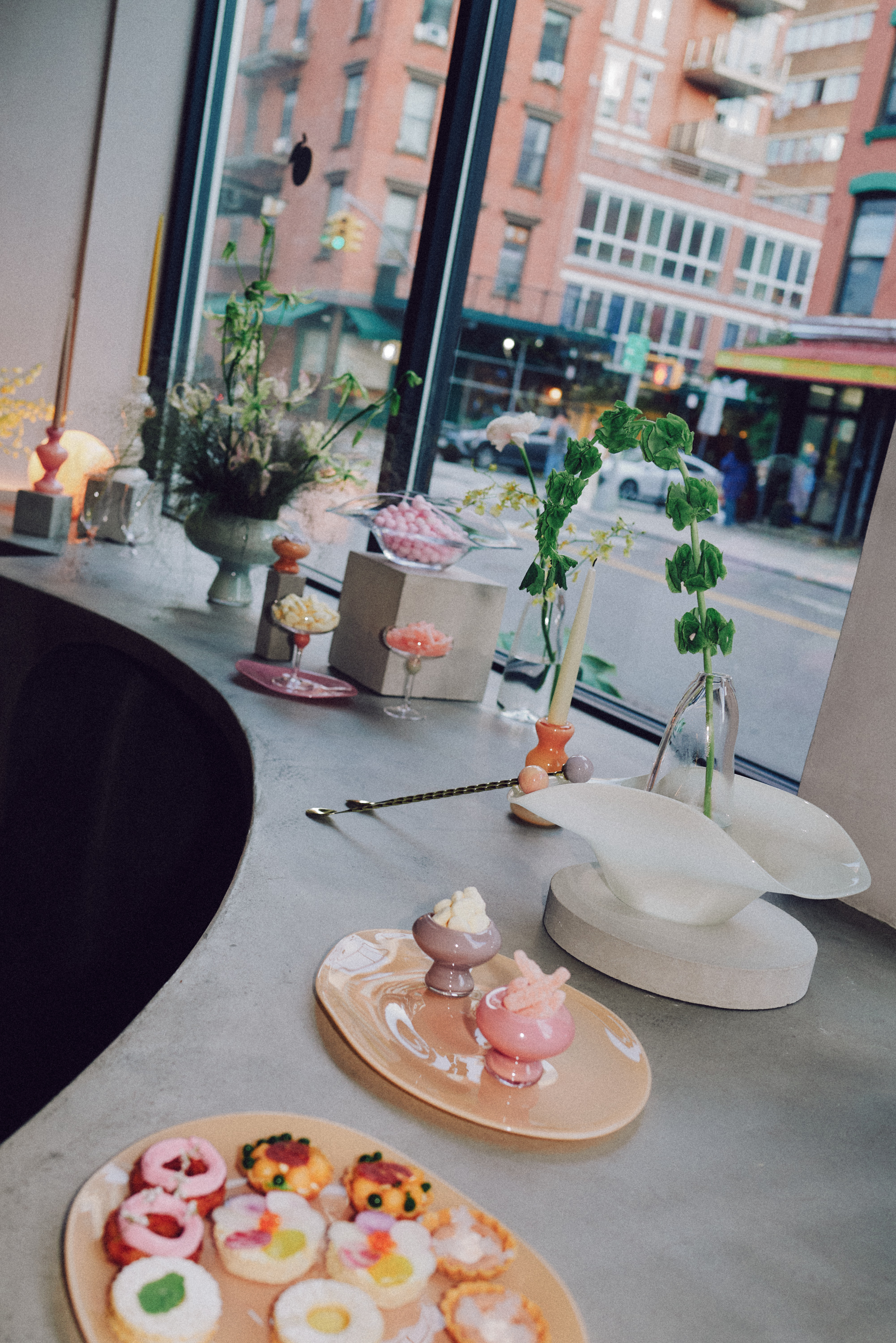 Basking in the warm glow of Mardahl’s much-loved Bon Bon Lighting, guests enjoyed our Cantaloupe and Rhubarb Grape cocktails from her glassware alongside our signature appetisers taking inspiration from Mardahl’s artist mood board.